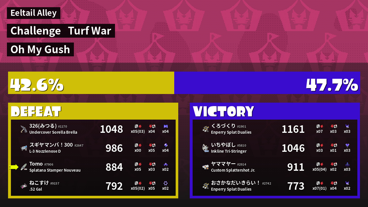 | Medals | #1 Overall Splatter #1 Enemy Splatter #2 Popular Target | ||