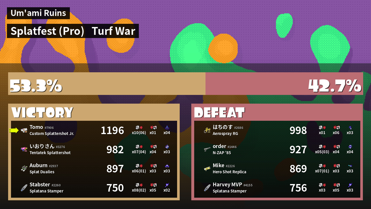 Kills / Deaths | 4 + 6 / 1 > Kill Ratio: 4.00 | ||