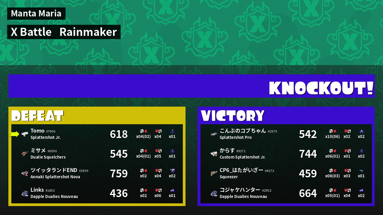 | Mode | Rainmaker - X Battle | ||