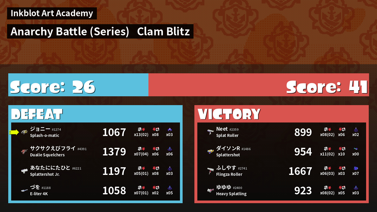 Kills / Deaths | 11 + 2 / 8 > Kill Ratio: 1.38 | ||