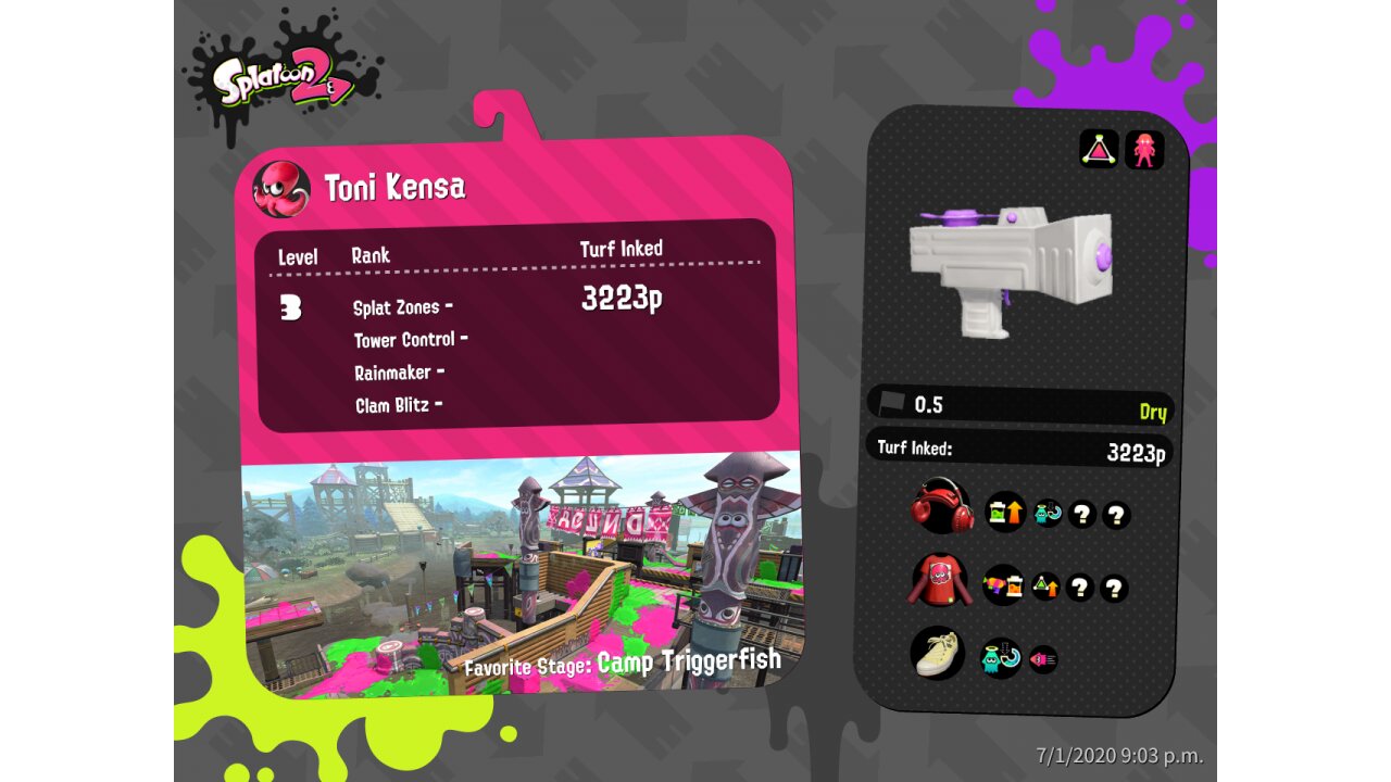 | Weapon | Splattershot Jr. ( Splat Bomb, Ink Armor) | ||||||||||||||||||||||||||||||||||