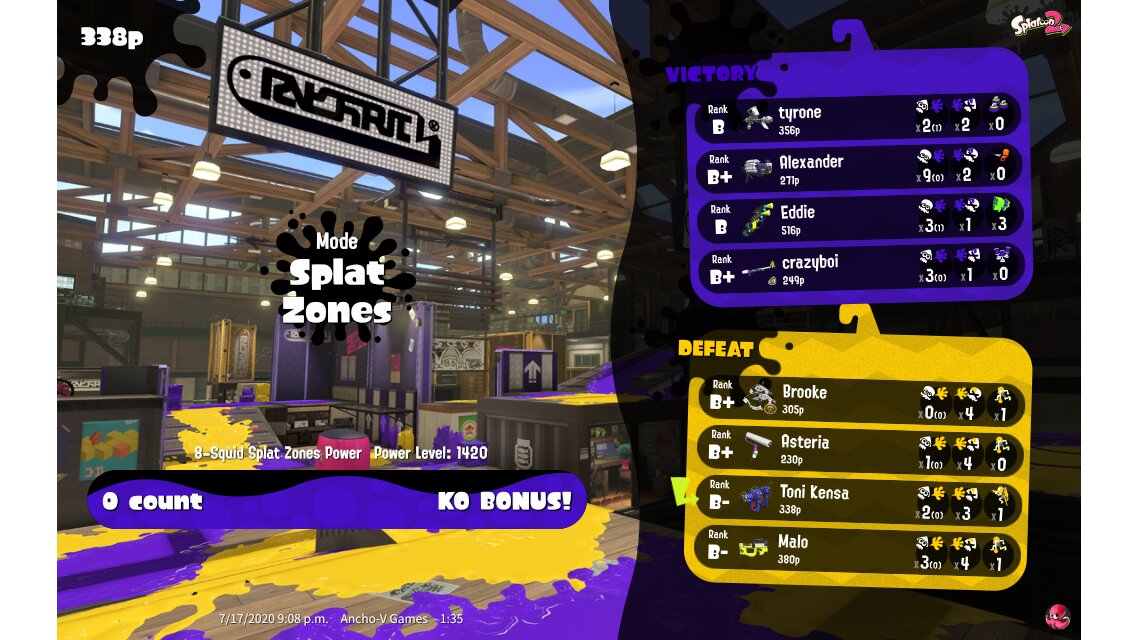 | Mode | Splat Zones - Ranked Battle | ||||||||||||||||||||||||||||||||||
