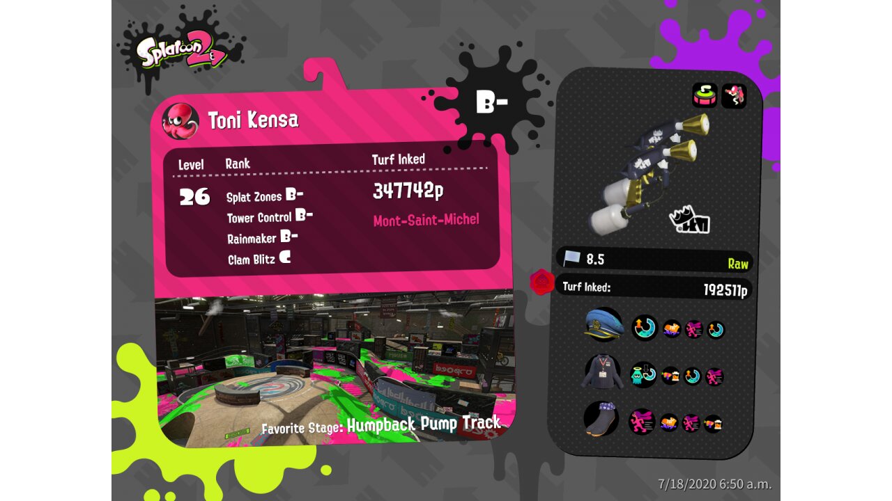 | Weapon | Enperry Splat Dualies ( Curling Bomb, Inkjet) | ||||||||||||||||||||||||||||||||||