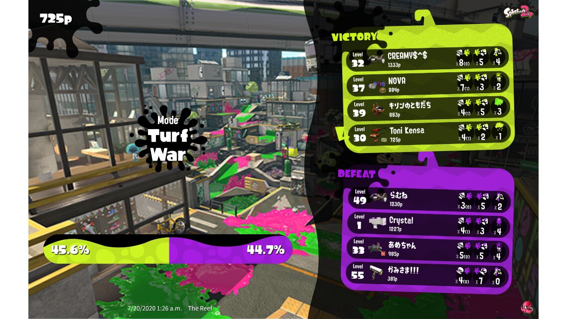 | Mode | Turf War - Regular Battle | |||||||||||||||||||||||||||||||||||||
