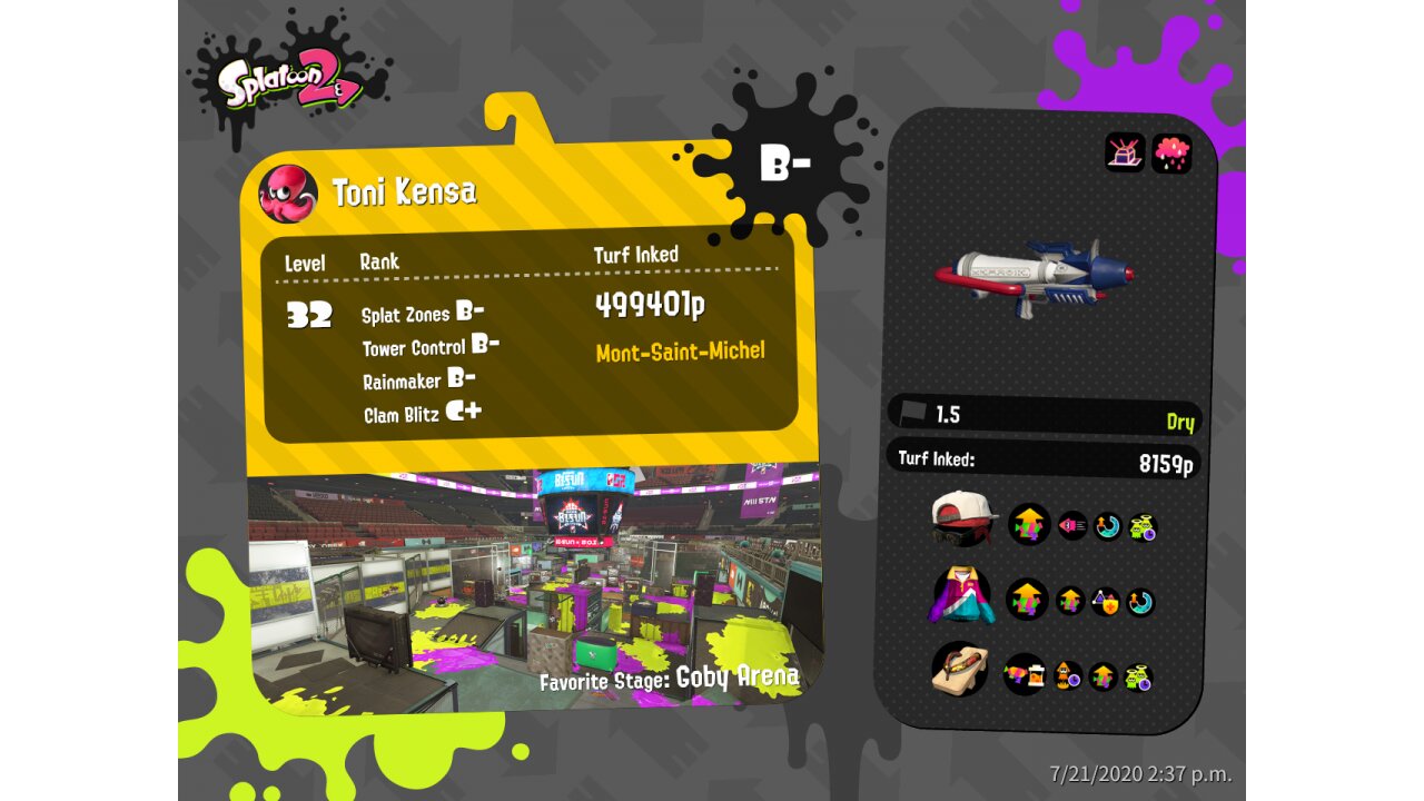 | SplatNet Battle # | 778 | ||||||||||||||||||||||||||||||||||||||||