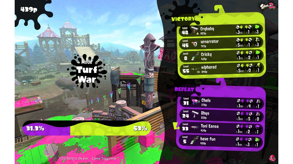 | Mode | Turf War - Regular Battle | |||||||||||||||||||||||||||||||