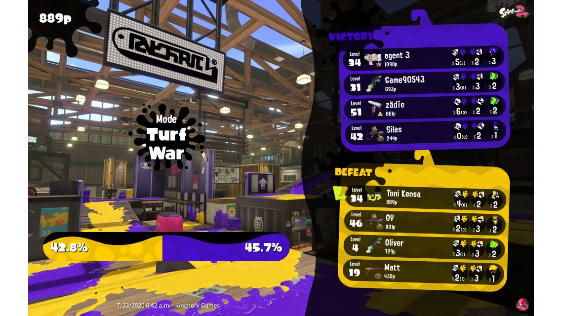 | Mode | Turf War - Regular Battle | |||||||||||||||||||||||||||||||||||||
