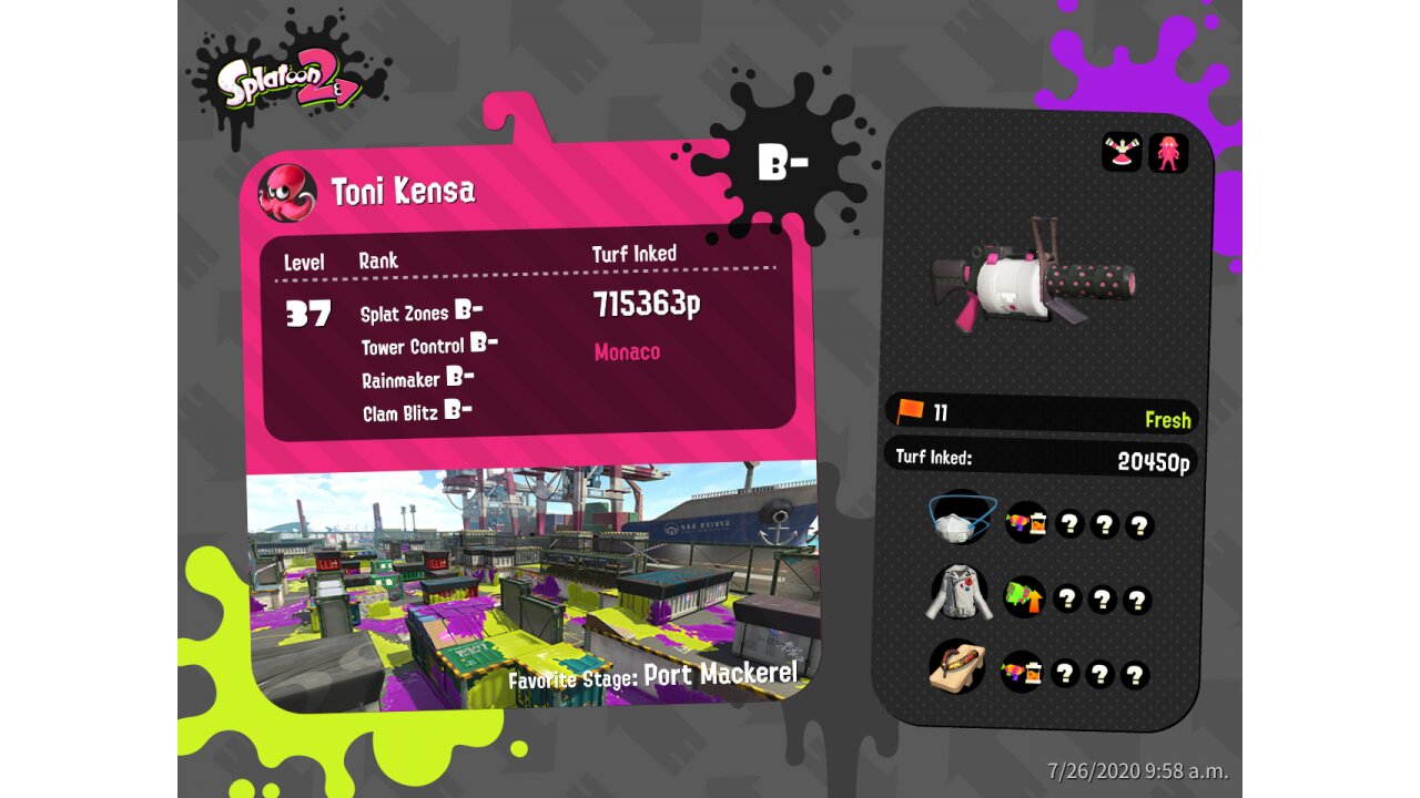 | Weapon | .96 Gal ( Sprinkler, Ink Armor) | |||||||||||||||||||||||||