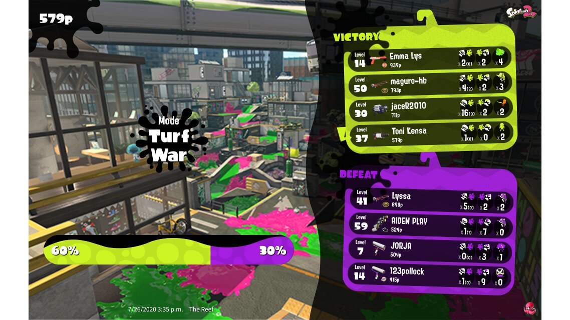 | Mode | Turf War - Regular Battle | ||||||||||||||||||||||||||||||||||