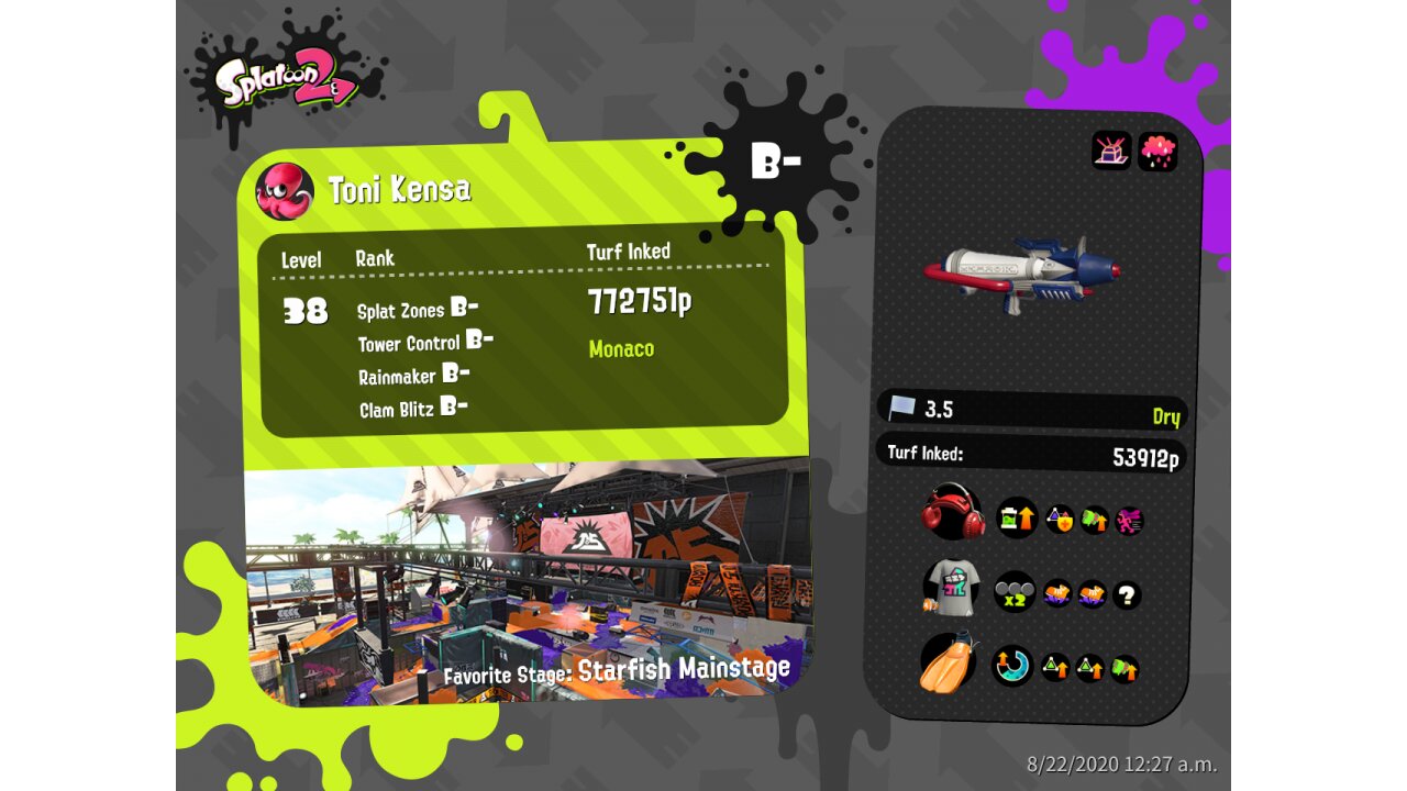 | Weapon | Splattershot Pro ( Point Sensor, Ink Storm) | ||||||||||||||||||||||||||||||||||||||||