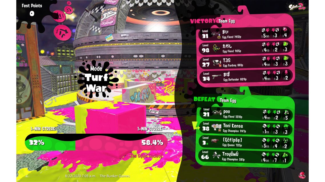 | Mode | Turf War - Splatfest (Normal) | |||||||||||||||||||||||||||||||||||||