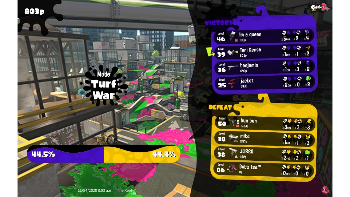 | Mode | Turf War - Regular Battle | |||||||||||||||||||||||||||||||||||||