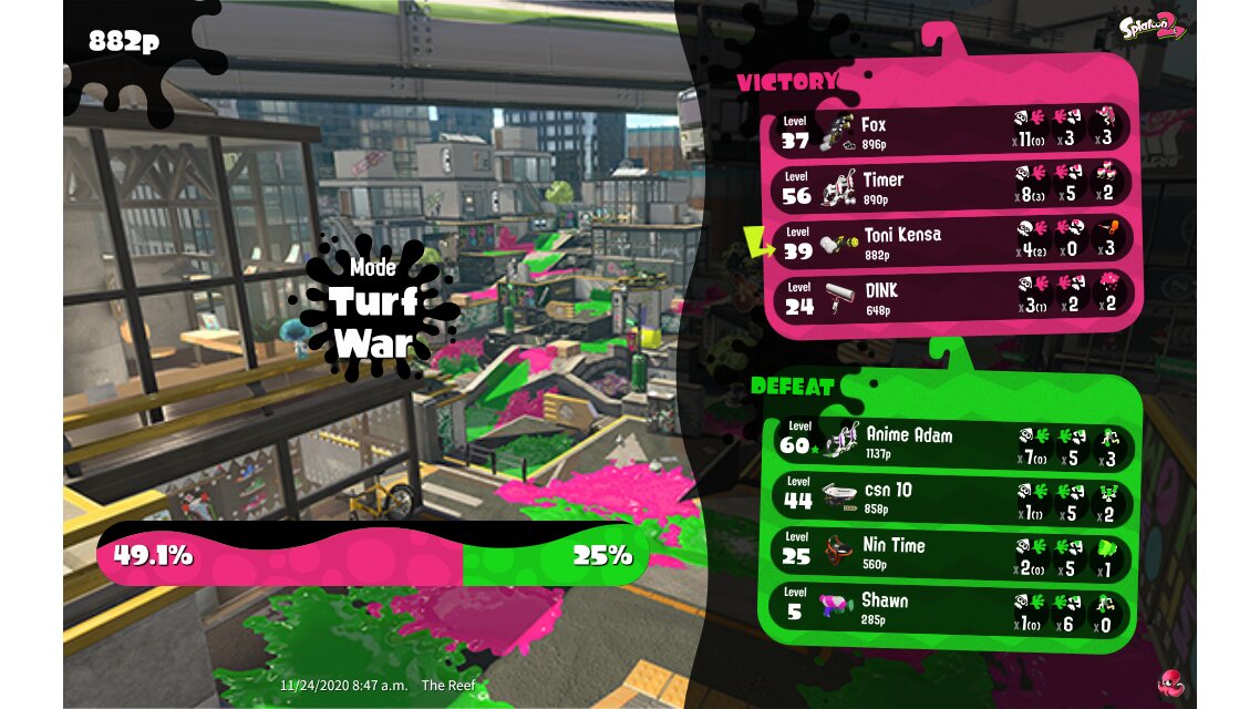 | Mode | Turf War - Regular Battle | ||||||||||||||||||||||||||||||||||||||||
