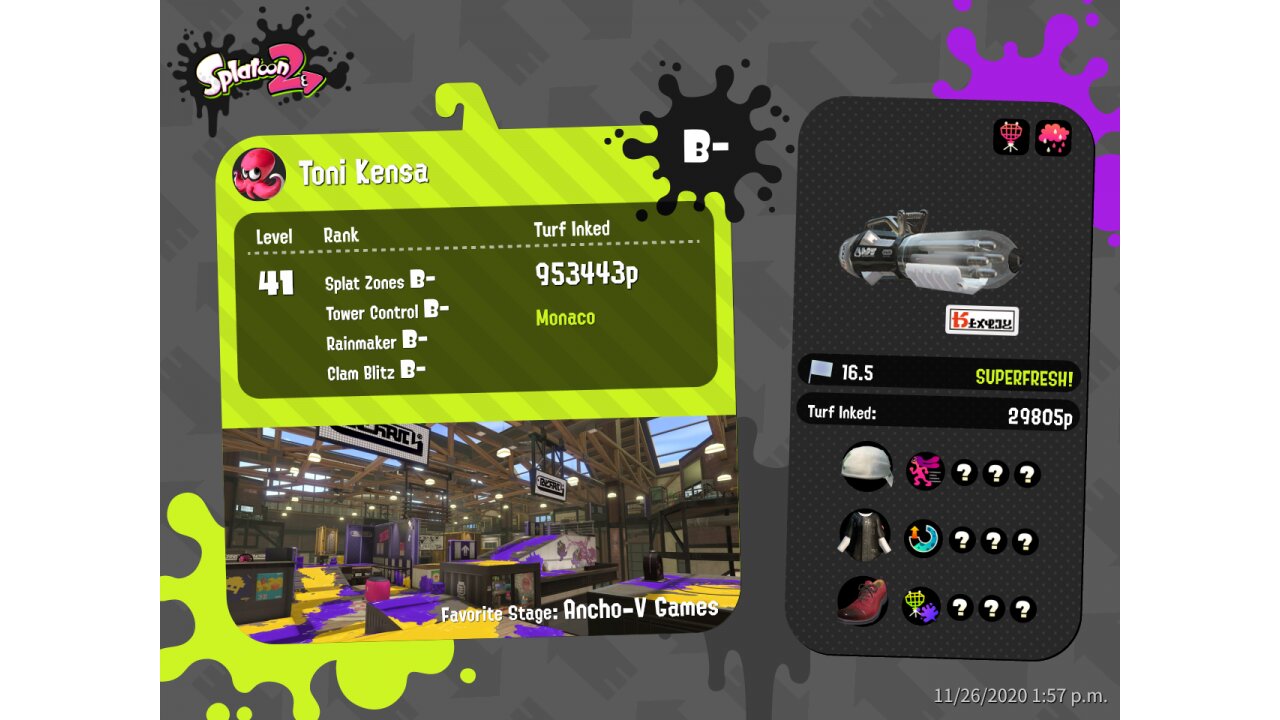 | SplatNet Battle # | 1,413 | ||||||||||||||||||||||||||||