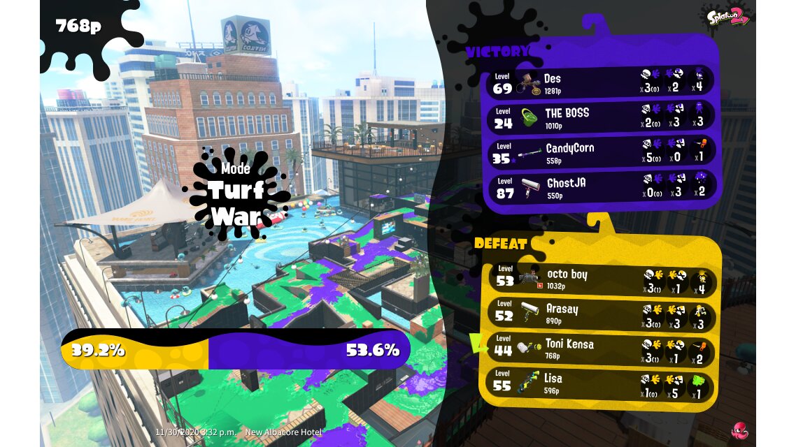 | Mode | Turf War - Regular Battle | |||||||||||||||||||||||||||||||