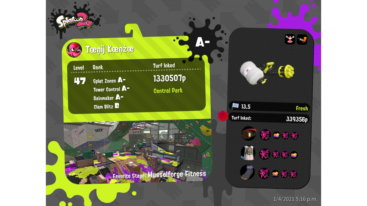 | Weapon | Heavy Splatling ( Sprinkler, Sting Ray) | |||||||||||||||||||||||||
