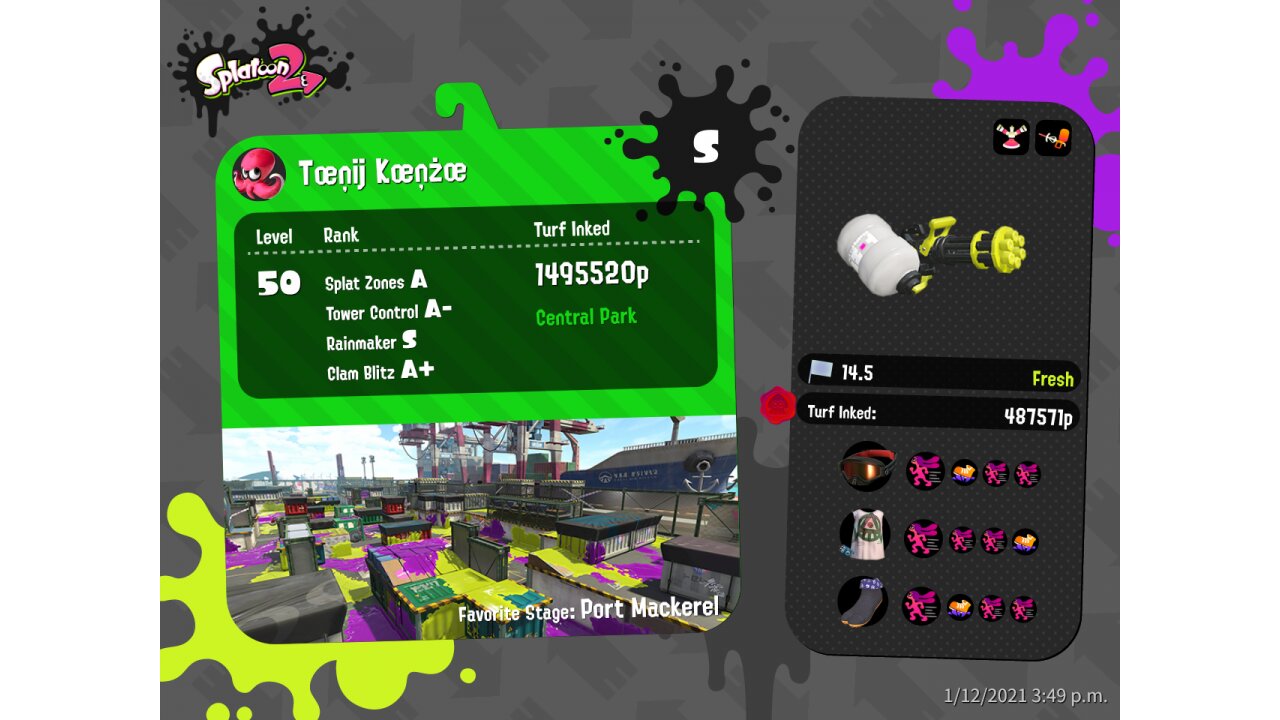 | Name | Weapon | Level | Rank | Inked | k+a/sp | k/d |