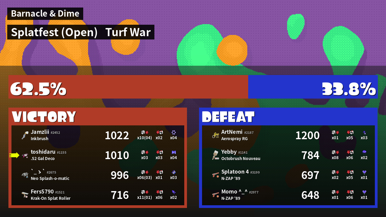 | Weapon | .52 Gal Deco ( Curling Bomb / Splattercolor Screen) | ||