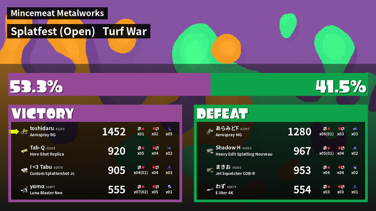 | Medals | #1 Turf Inker #1 Enemy-Base Inker #1 Damage Taker |