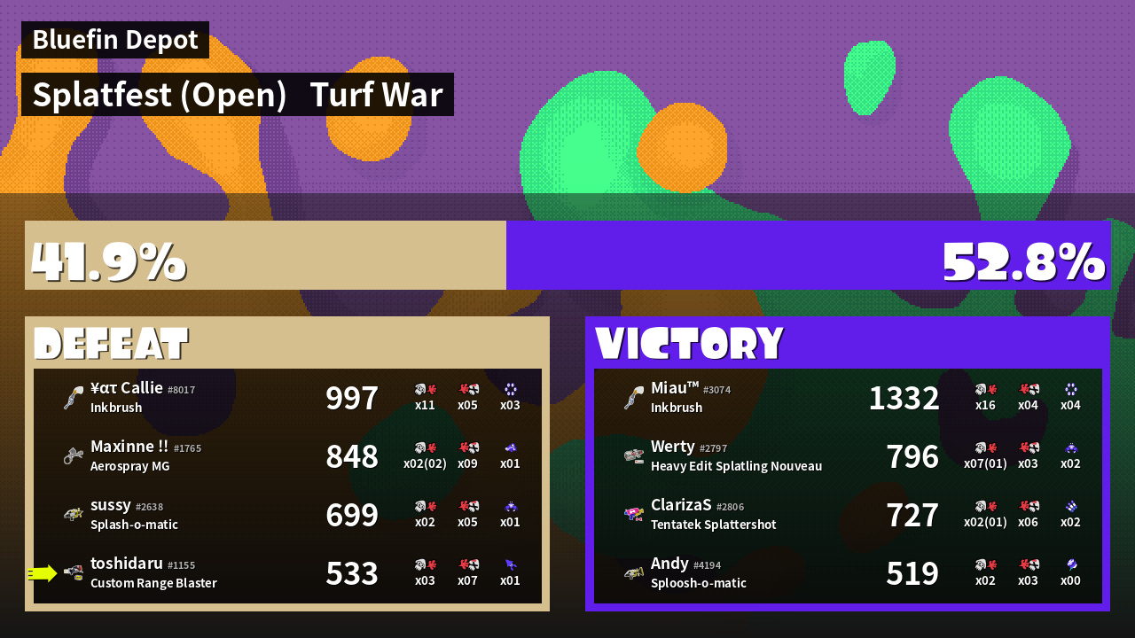 | Mode | Turf War - Splatfest (Open) | ||