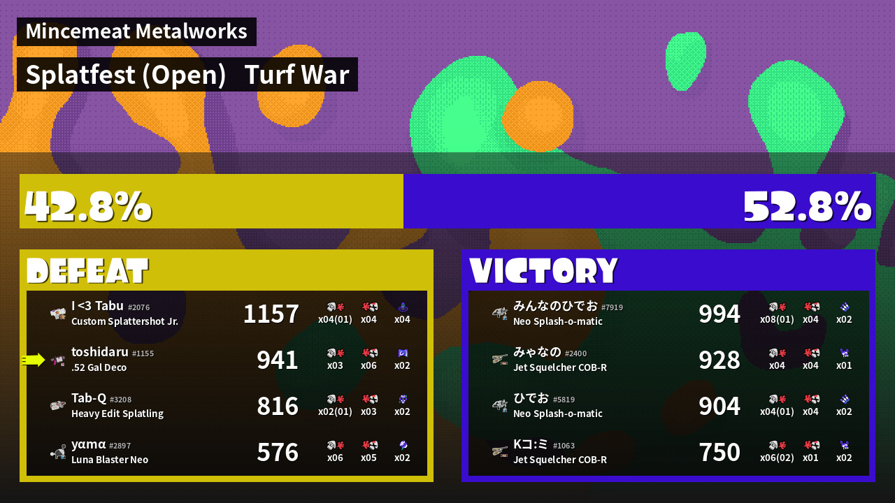 | Weapon | .52 Gal Deco ( Curling Bomb / Splattercolor Screen) |