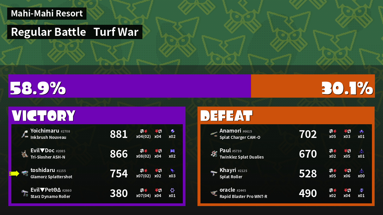 Kills / Deaths | 5 + 2 / 2 > Kill Ratio: 2.50 |