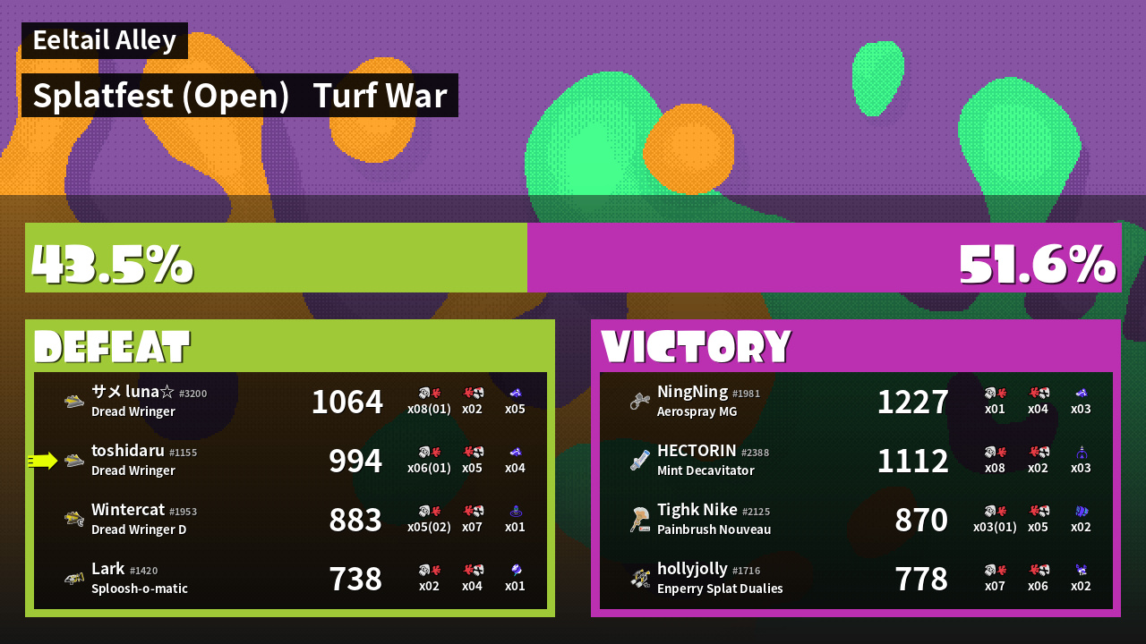 | Medals | #1 Super Jump Spot #1 Reefslider User #2 Overall Splatter | ||