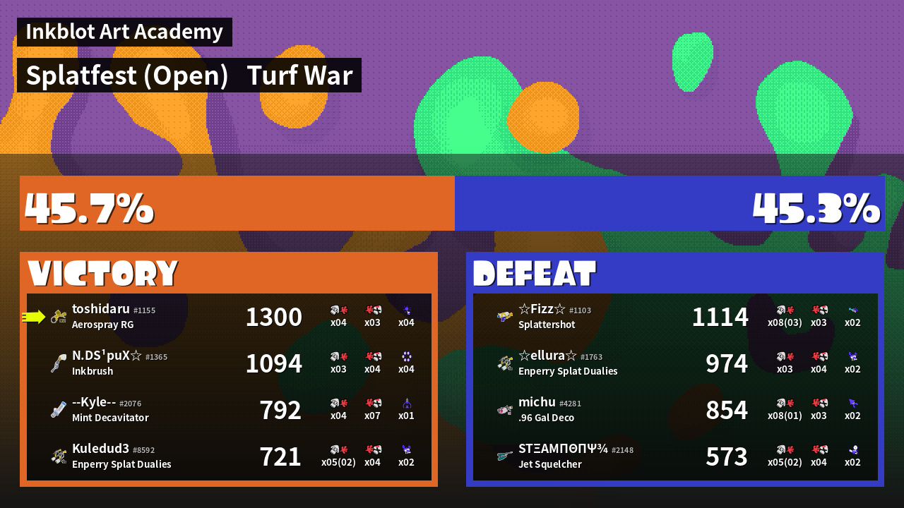 | Medals | #1 Turf Inker #1 Enemy-Base Inker #1 Super Jump Spot | ||
