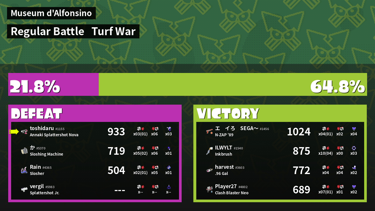 Kills / Deaths | 2 + 1 / 6 < Kill Ratio: 0.33 | ||