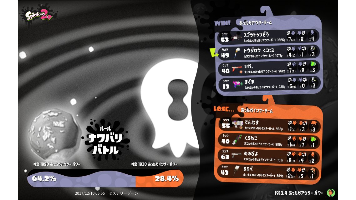 | SplatNet Battle # | 1,708 | ||||||||||||||||||||||||||||||||||