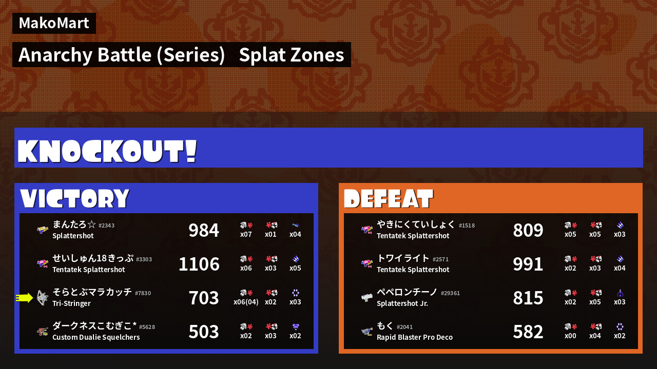 | Medals | #1 Splat Zone Guard #1 Splat Assister #1 Killer Wail 5.1 User | ||