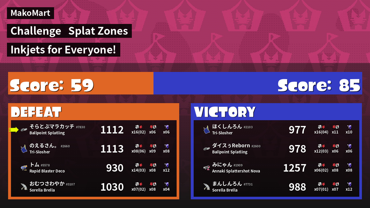 | Mode | Splat Zones - Challenge | ||