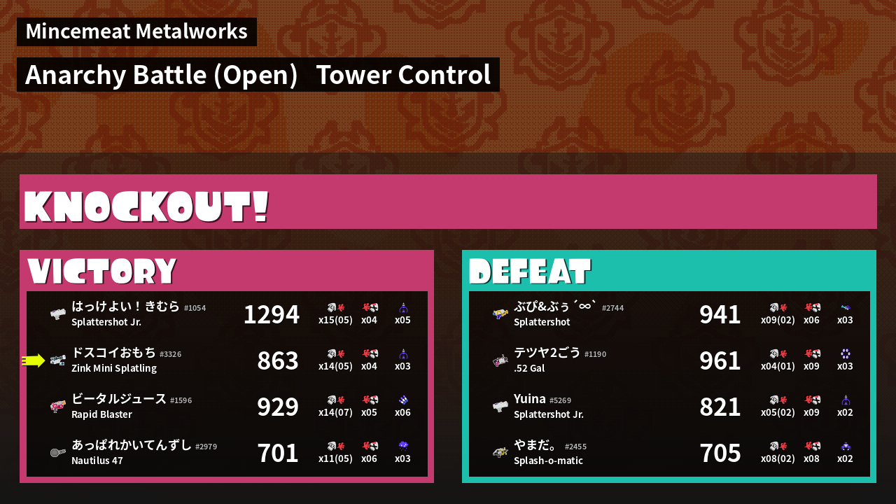 | Mode | Tower Control - Anarchy Battle (Open) | ||