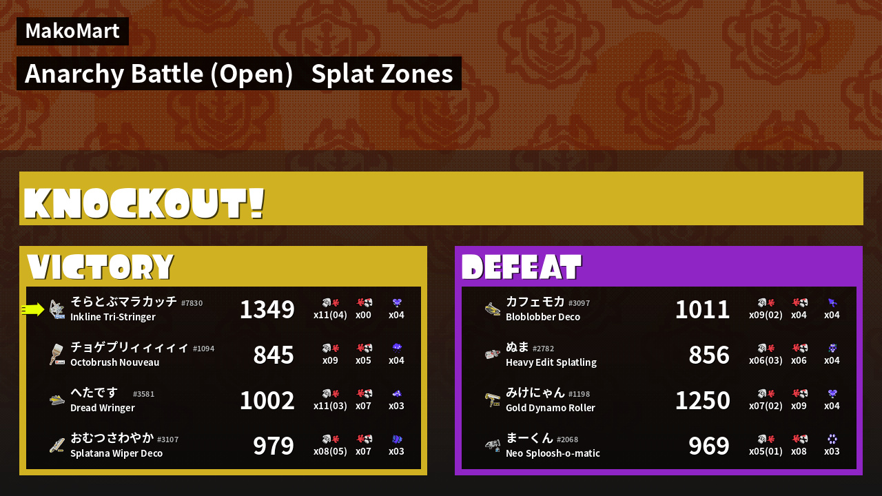 | Mode | Splat Zones - Anarchy Battle (Open) | ||