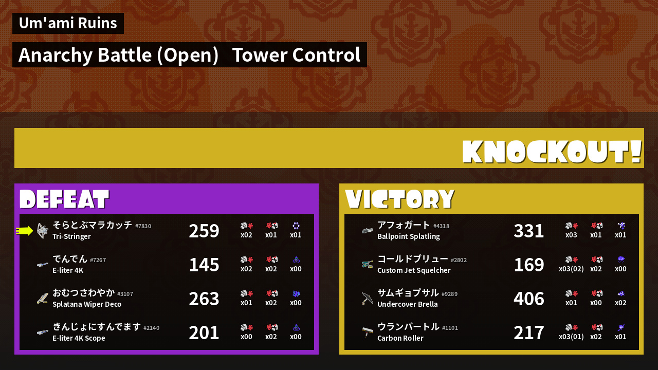 Kills / Deaths | 2 + 0 / 1 > Kill Ratio: 2.00 | ||