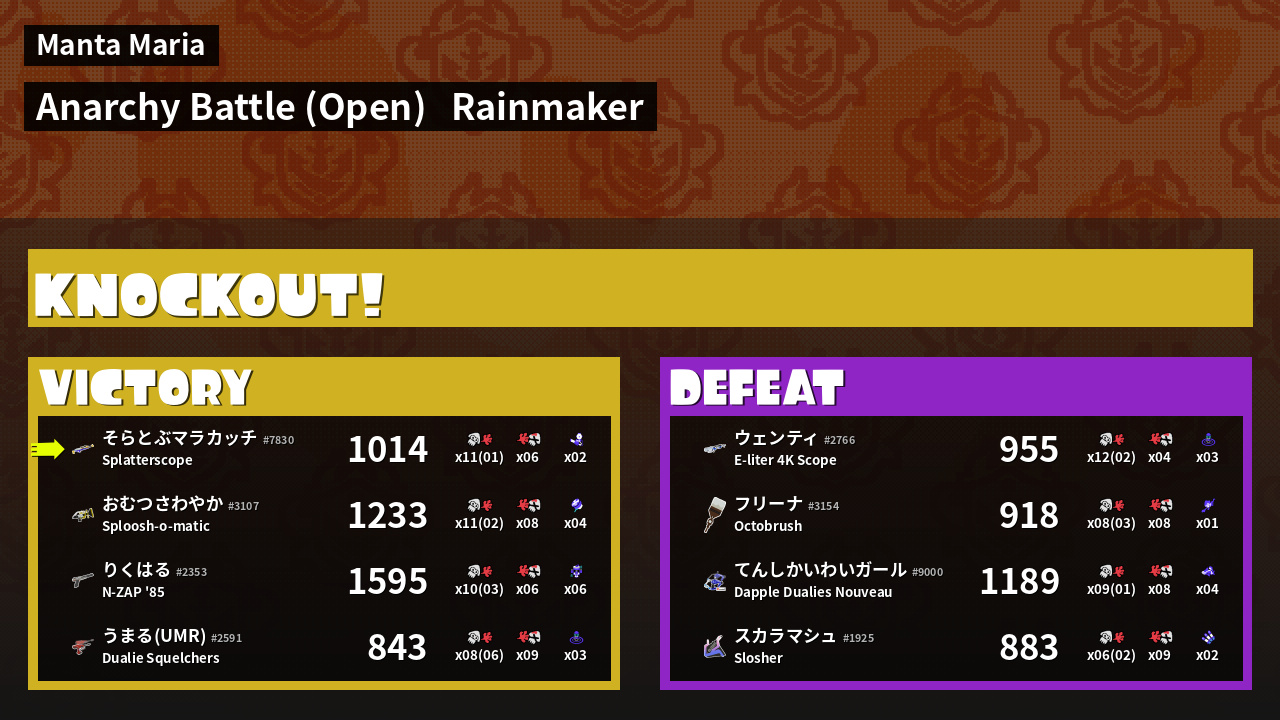 Kills / Deaths | 10 + 1 / 6 > Kill Ratio: 1.67 | ||