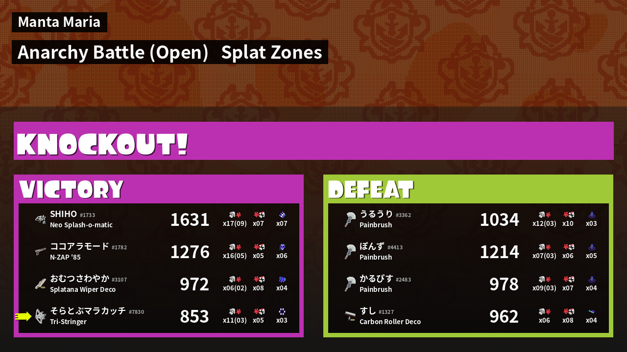 | Mode |  Splat Zones -  Anarchy Battle (Open) | ||