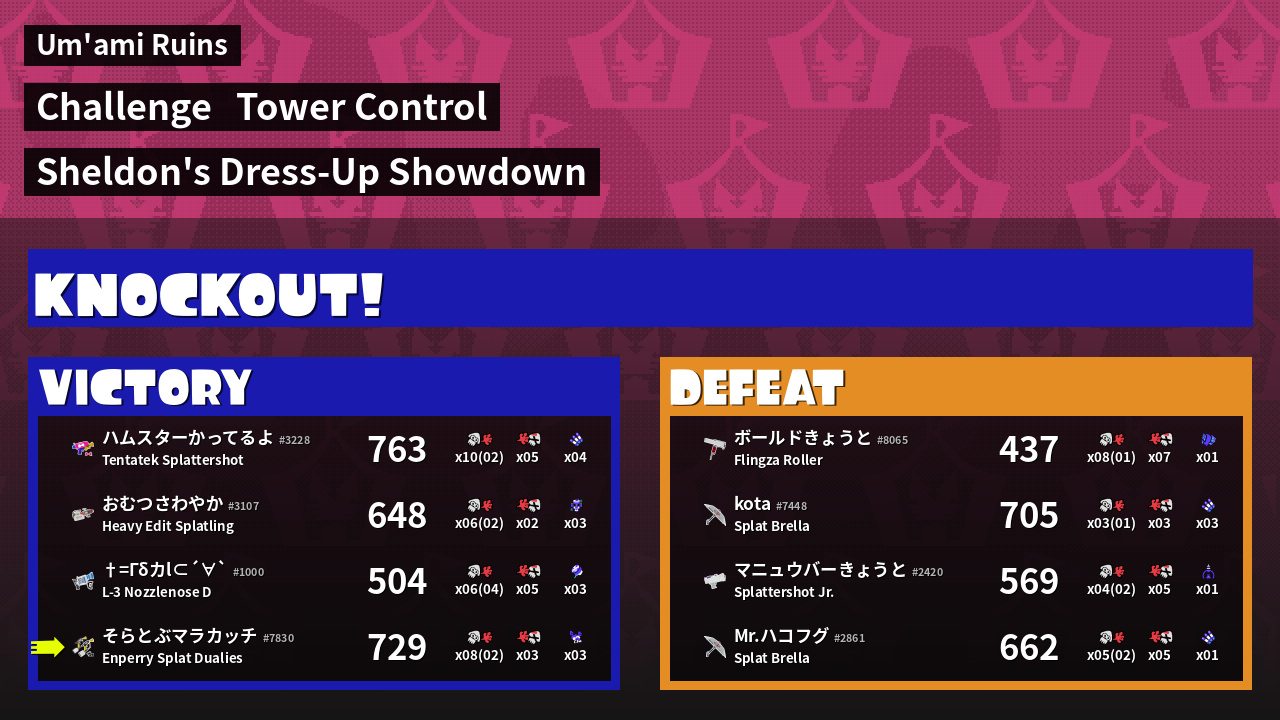 Kills / Deaths | 6 + 2 / 3 > Kill Ratio: 2.00 | ||