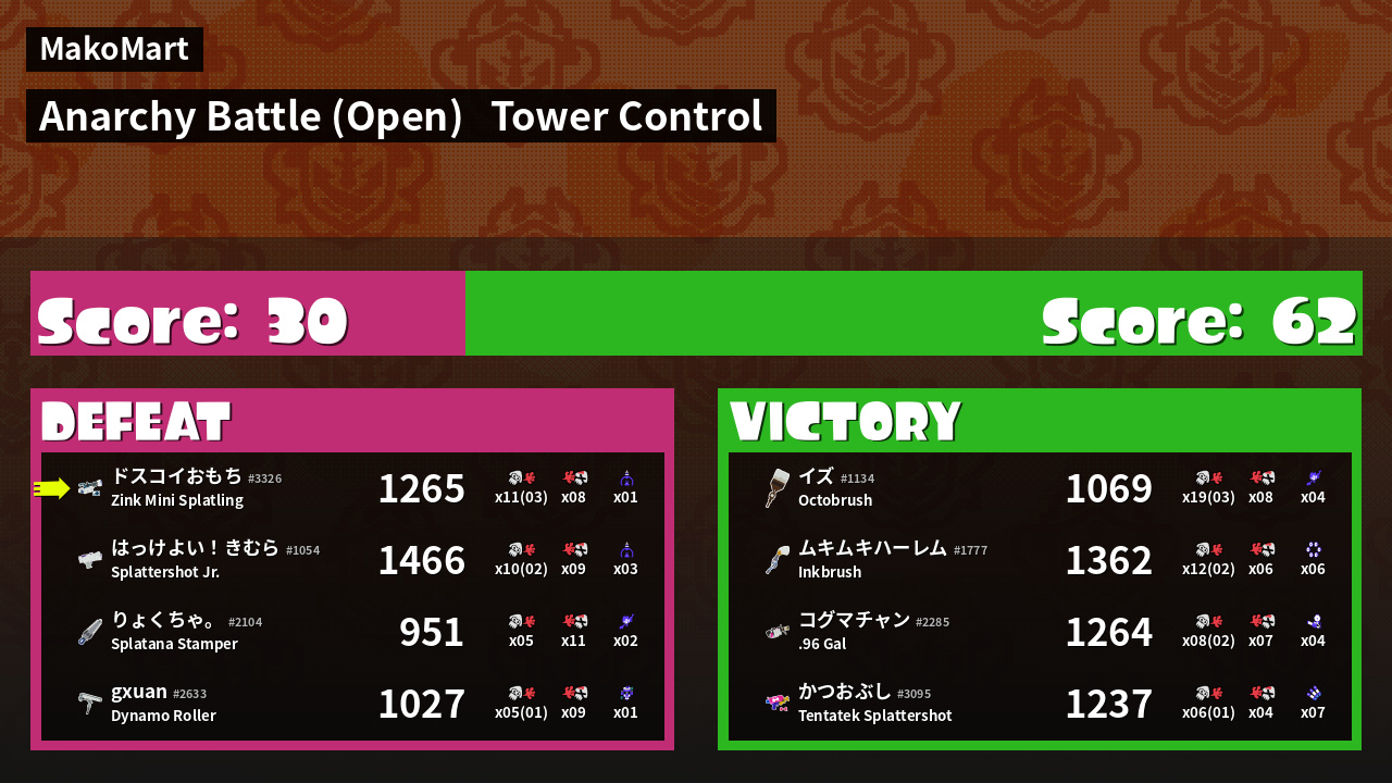 | Mode | Tower Control - Anarchy Battle (Open) | ||