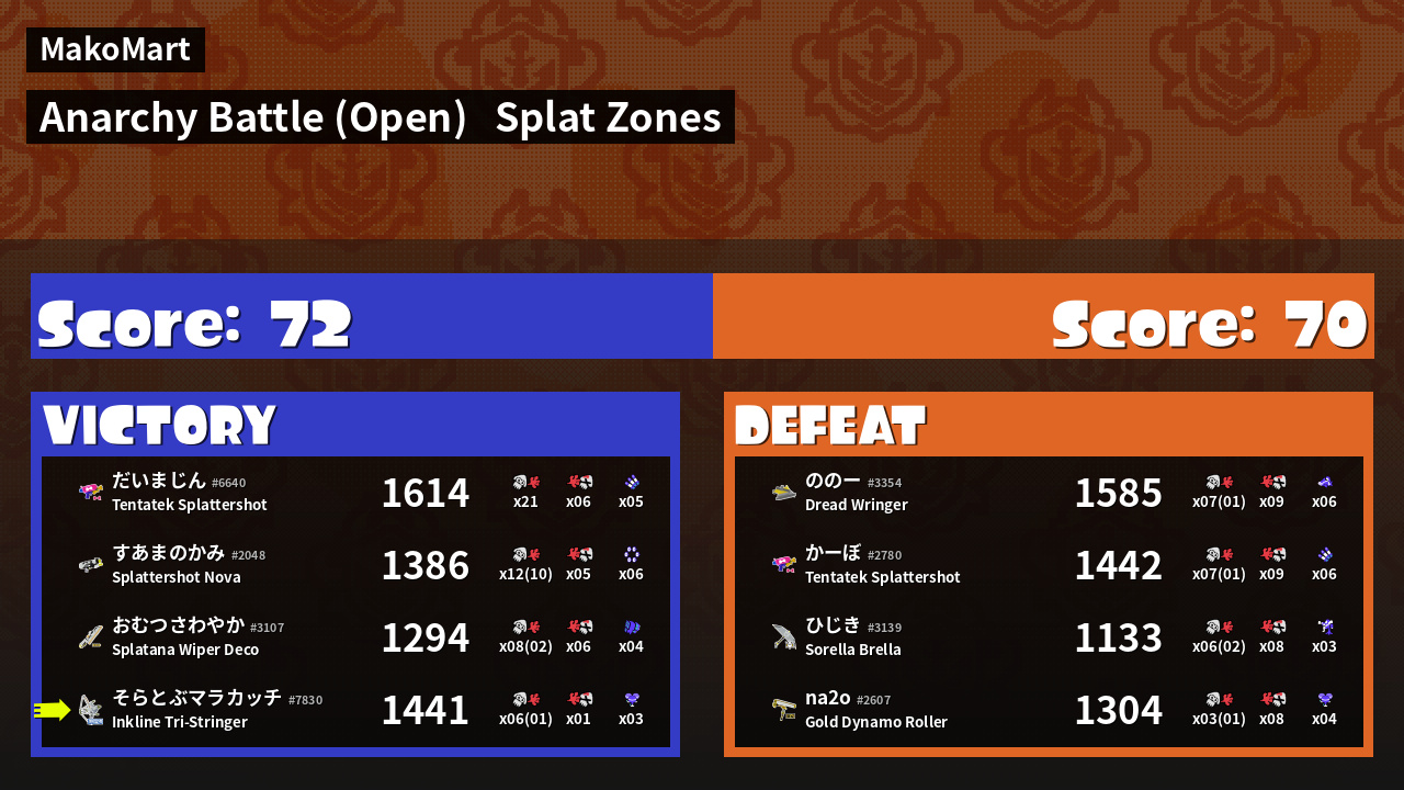 | Mode |  Splat Zones -  Anarchy Battle (Open) | ||
