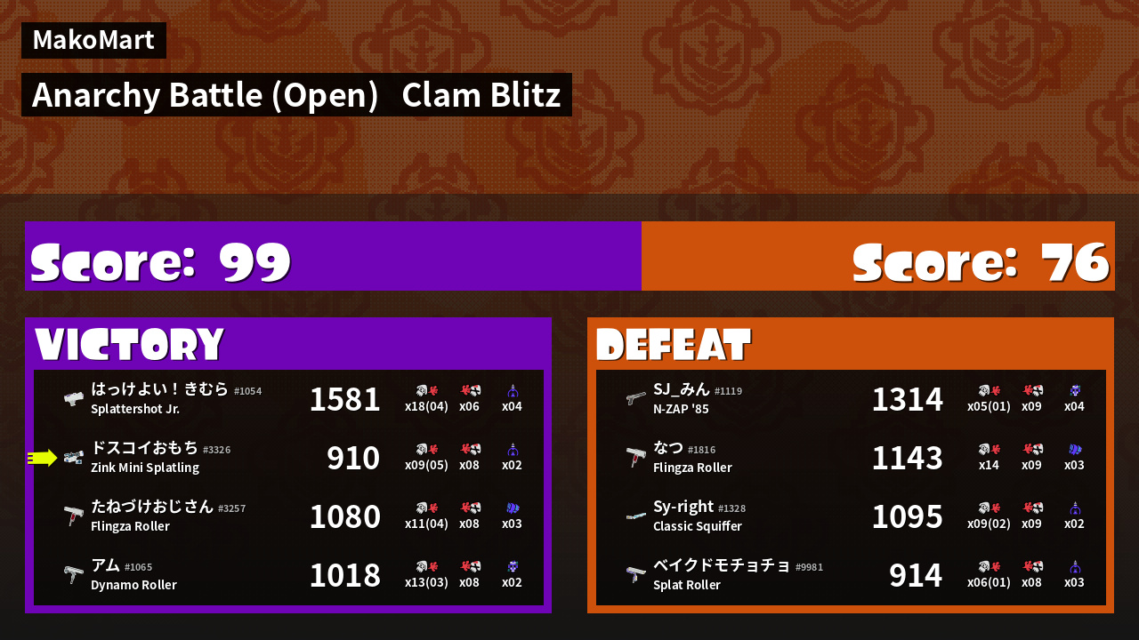 Results of つじもち's Battle