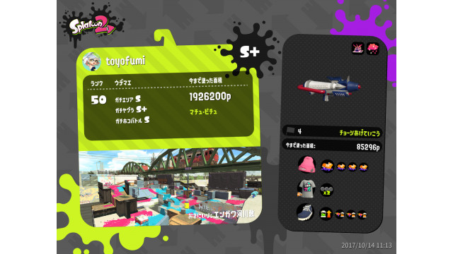 | Weapon | Splattershot Pro ( Point Sensor, Ink Storm) |