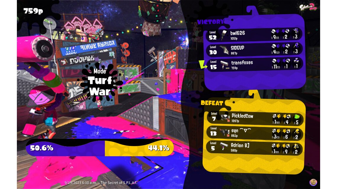 | Mode | Turf War - Private Battle | ||||||||||||||||||||||||||||||||||