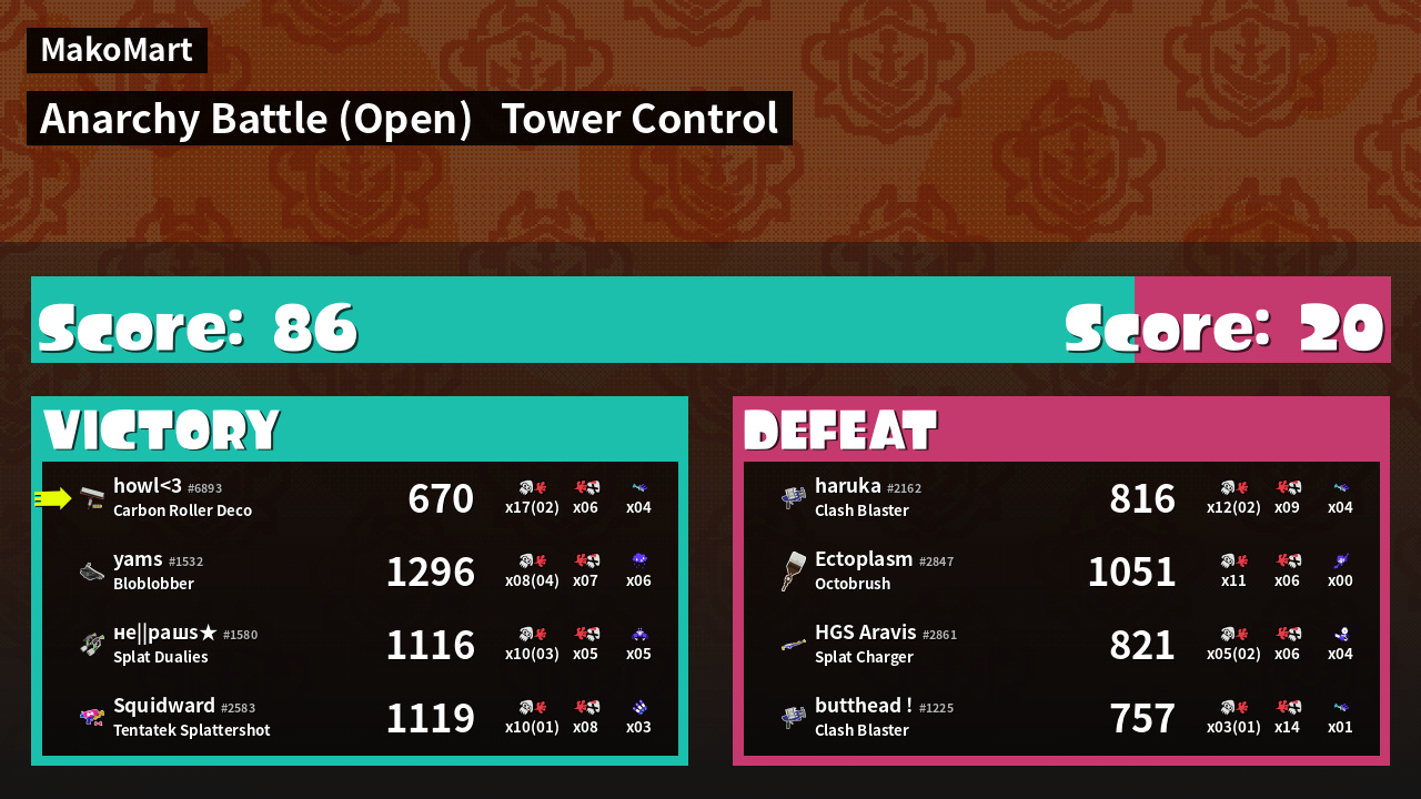 Kills / Deaths | 15 + 2 / 6 > Kill Ratio: 2.50 | ||