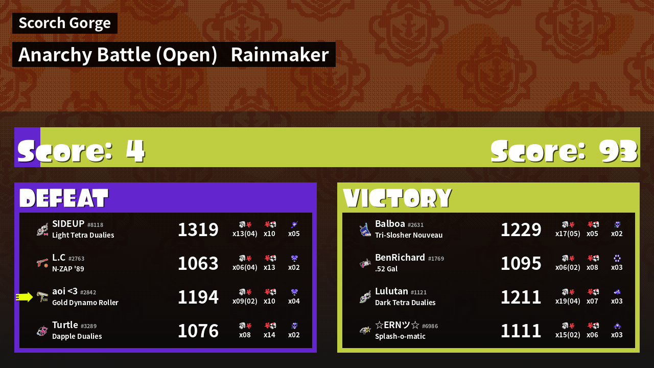 | Mode | Rainmaker - Anarchy Battle (Open) | ||