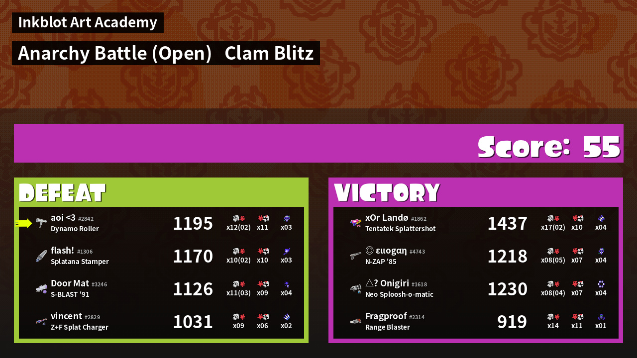 Name | Weapon | Inked | ![]() |