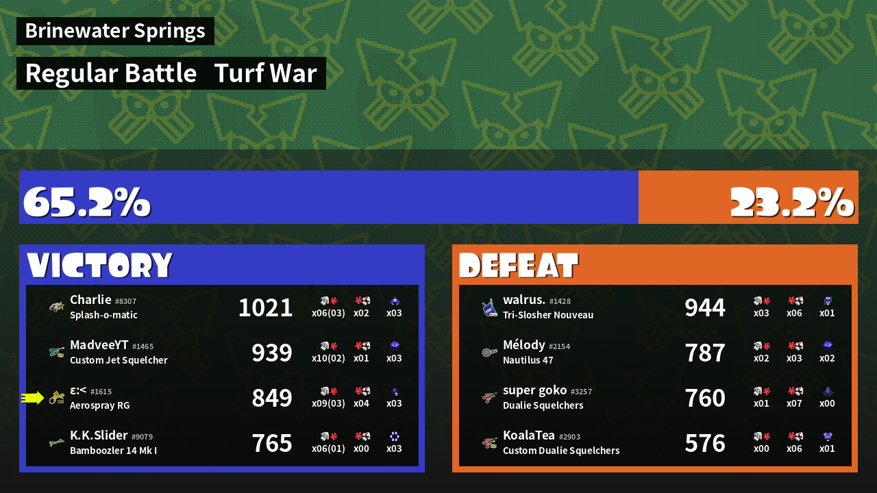 | Mode | Turf War - Regular Battle | ||