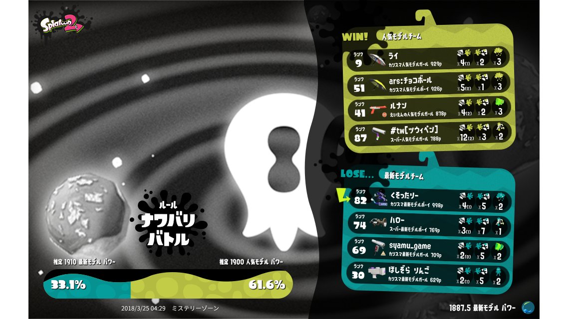 | Splatfest Power | 1,887.5 | |||||||||||||||||||||||||||||||||||||