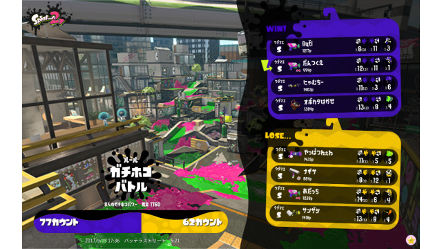 | Name | Weapon | Level | Rank | Inked | k+a/sp | k/d |