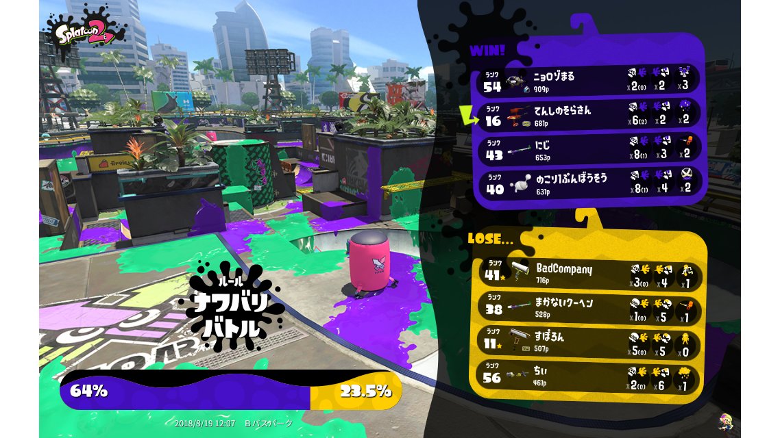 | Mode | Turf War - Regular Battle | |||||||||||||||||||||||||||||||||||||